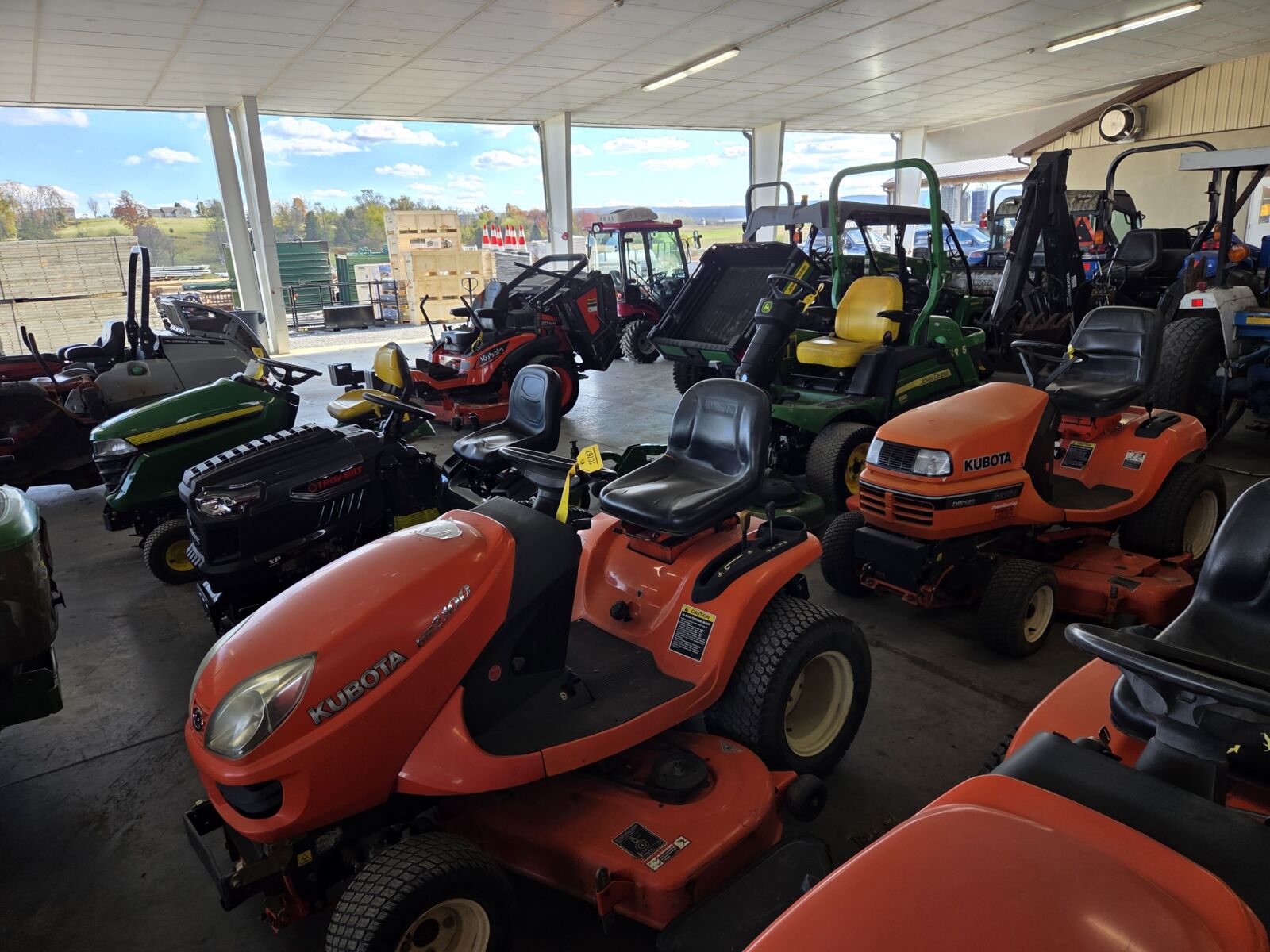 Kubota ZD1211 dsl, 61”, 896 hrs; Kubota ZD331 dsl, 1800 hrs; 2019 Kubota Z781i 54”, 250 hrs; JD 757 54”, 971 hrs; JD 757 54”, triple bagger; Hustler Super Z mini 52”, hopper bagger, 724 hrs; Grasshopper 329B 61”, twin bagger; John Deere 652R 52” stand on, 1513 hrs; Kubota G2160 lawn tractor, 60”, dsl, 838 hrs; Kubota GR2000 4×4, 48”, 995 hrs; Husqvarna LTA18538 38”, twin bagger; John Deere 214 w/ deck, snowblower, & snowblade; Cub Cadet LT1050 50”, twin bagger; 3 – Hustler HH3524 pressure washers – new; Honda WB20 water pump – new; JD TRX26 snow blower, and other snowblowers; BCS potato digger attachment; Grasshopper 52” power fold, rear discharge mower deck; Echo PB-770 & PB-755SH back pack blowers.
