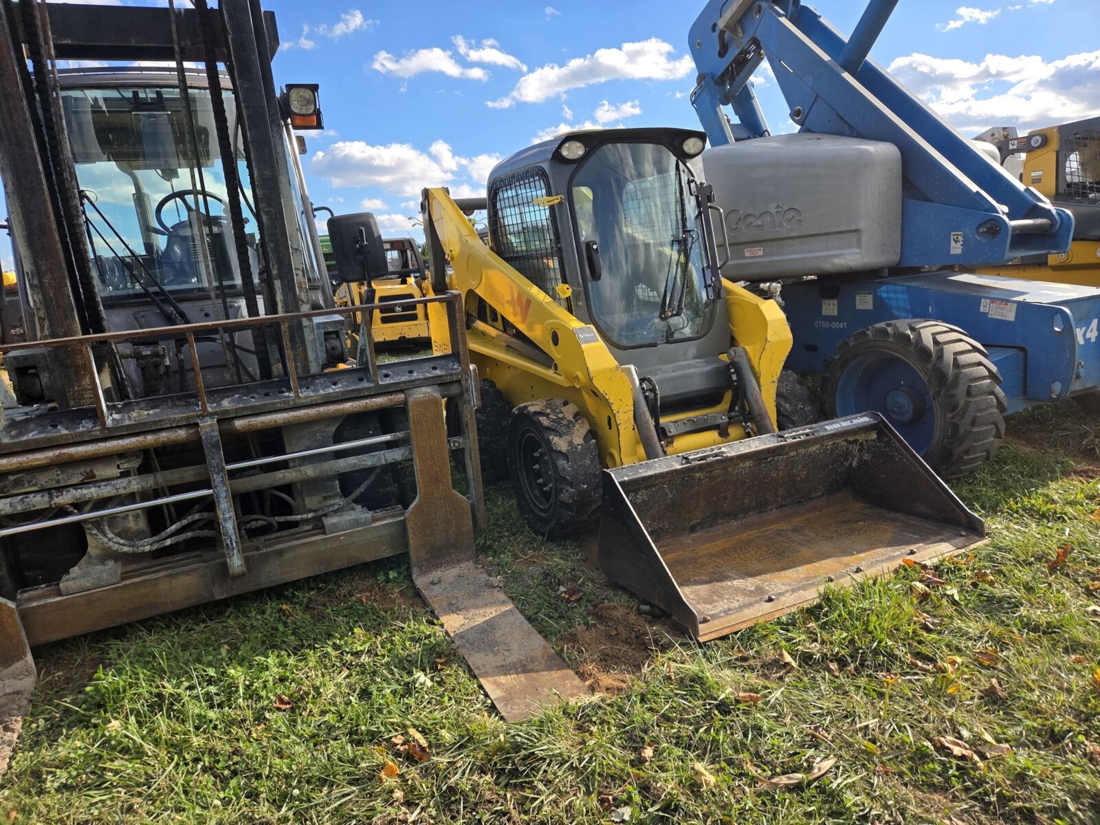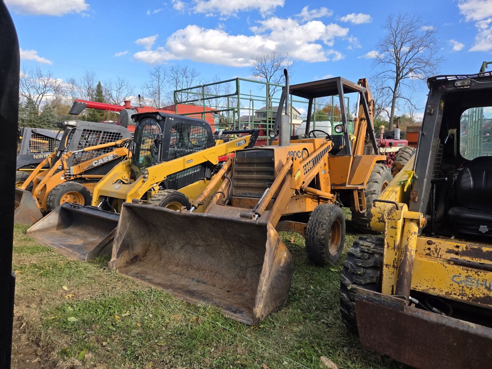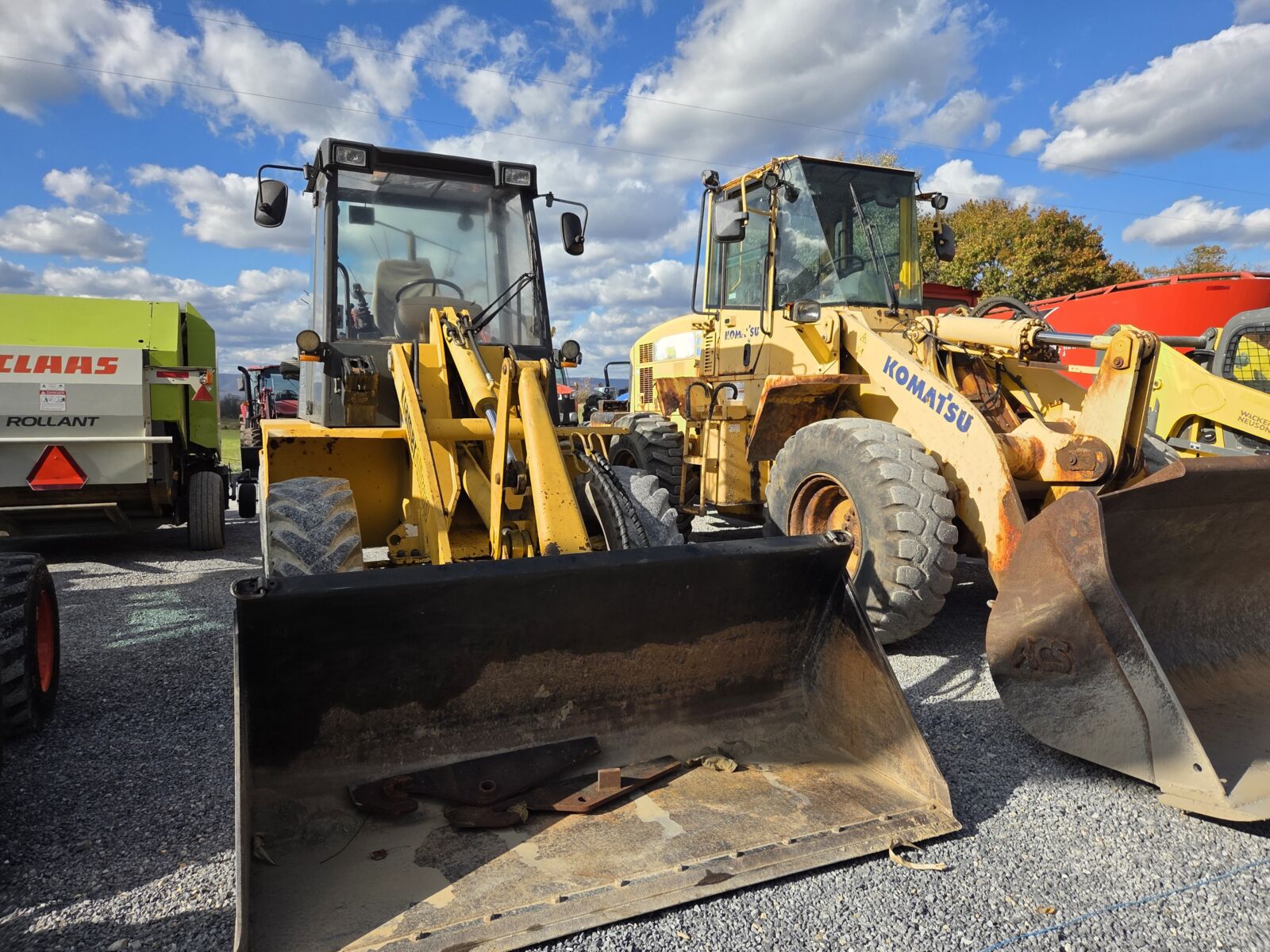 Wheel Loaders: 2019 Case 321F EROPS, 4560 hrs; NH LW110.B EROPS, 4×4, 9349 hrs; Case 621C w/ bucket & forks; JCB 409 OROPS, 2512 hrs; Kramer Allmand 520 wheel loader, EROPS, 4 wheel steer, 2900 hrs.