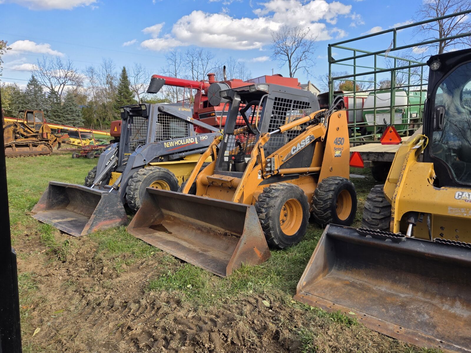Challenger: 2007 MT765B tracks, pwr shift, 5414 hrs; 2009 645C Cab, 4×4, duals, 7665 hrs – weak hyd pump.