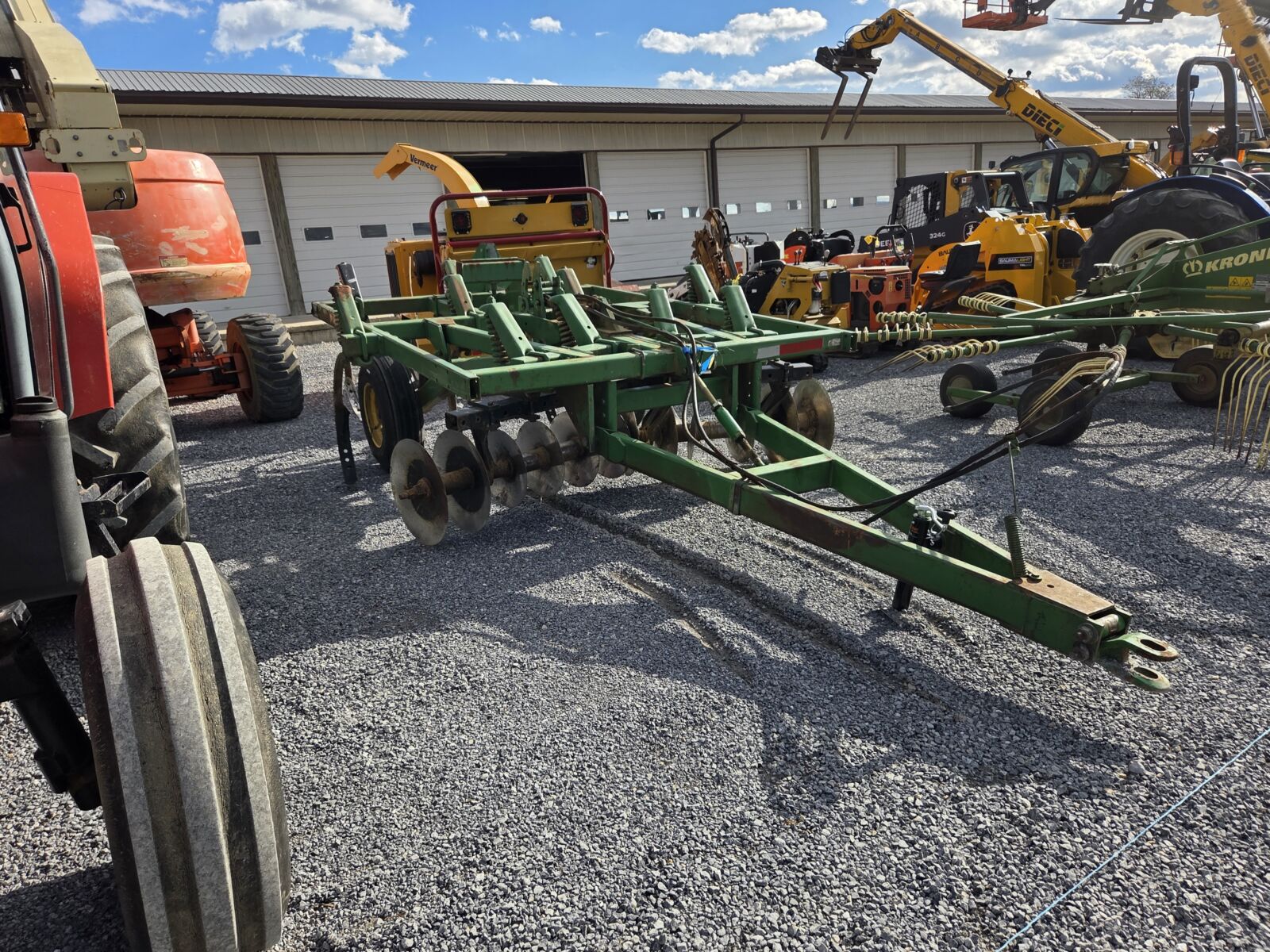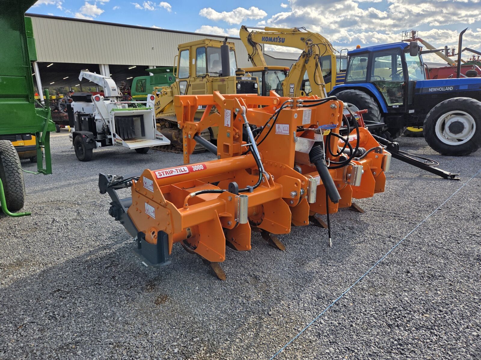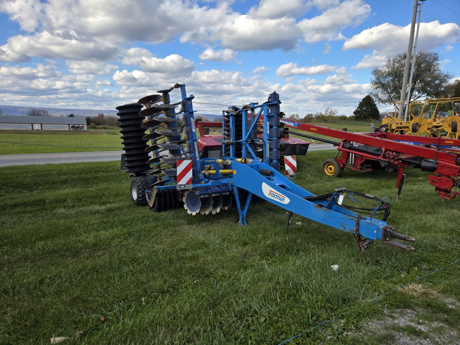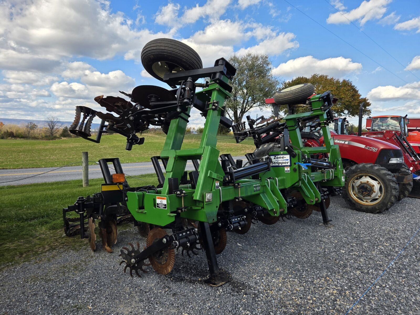 2024 Falc Strip-till 3000 4R30, front rippers, rear packer rollers, rear hitch for 3pt. planter – demo unit; Case IH 465 speed tiller 3pt. disc – nice; White 445 9 tooth disc chisel, pull type, hyd on the coulters; IH 710 5×16 auto reset plow; Athens 132 12’ rock flex disc; Brillion P-10 14’ transport packer.