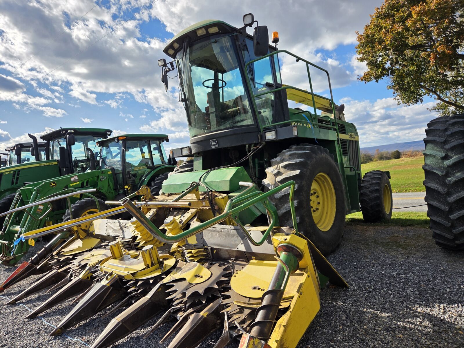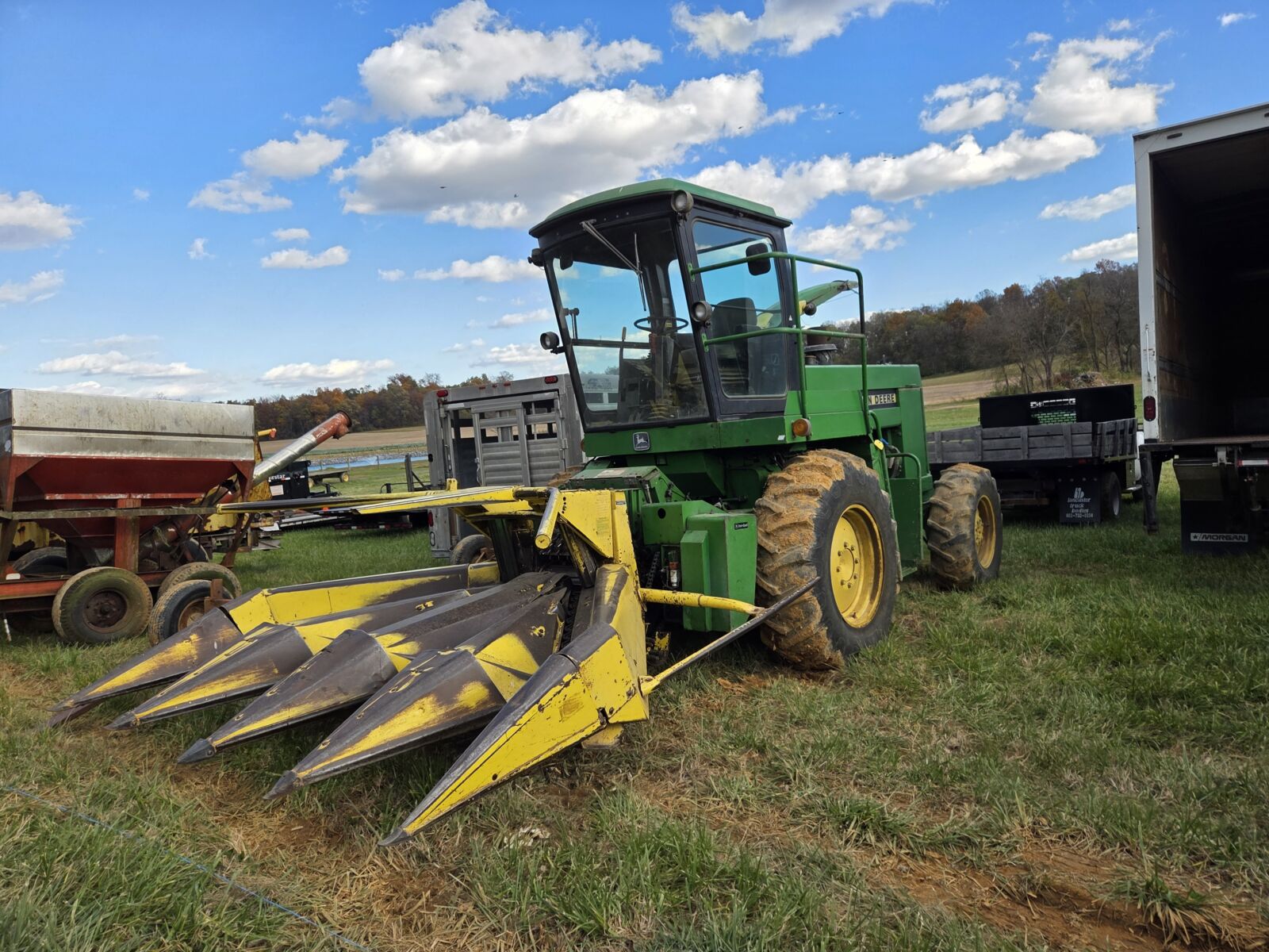 2013 New Holland FR600 self propelled chopper, 4923 hrs, 1100 hrs on reman eng; Krone Easy Collect 450-2 6RN rotary head; 2003 Claas 450 Xtra corn head, field ready, like new knives; New Holland 6RN large drum rotary head – good condition; JD 3975 harvester, KP, 7’ pickup.