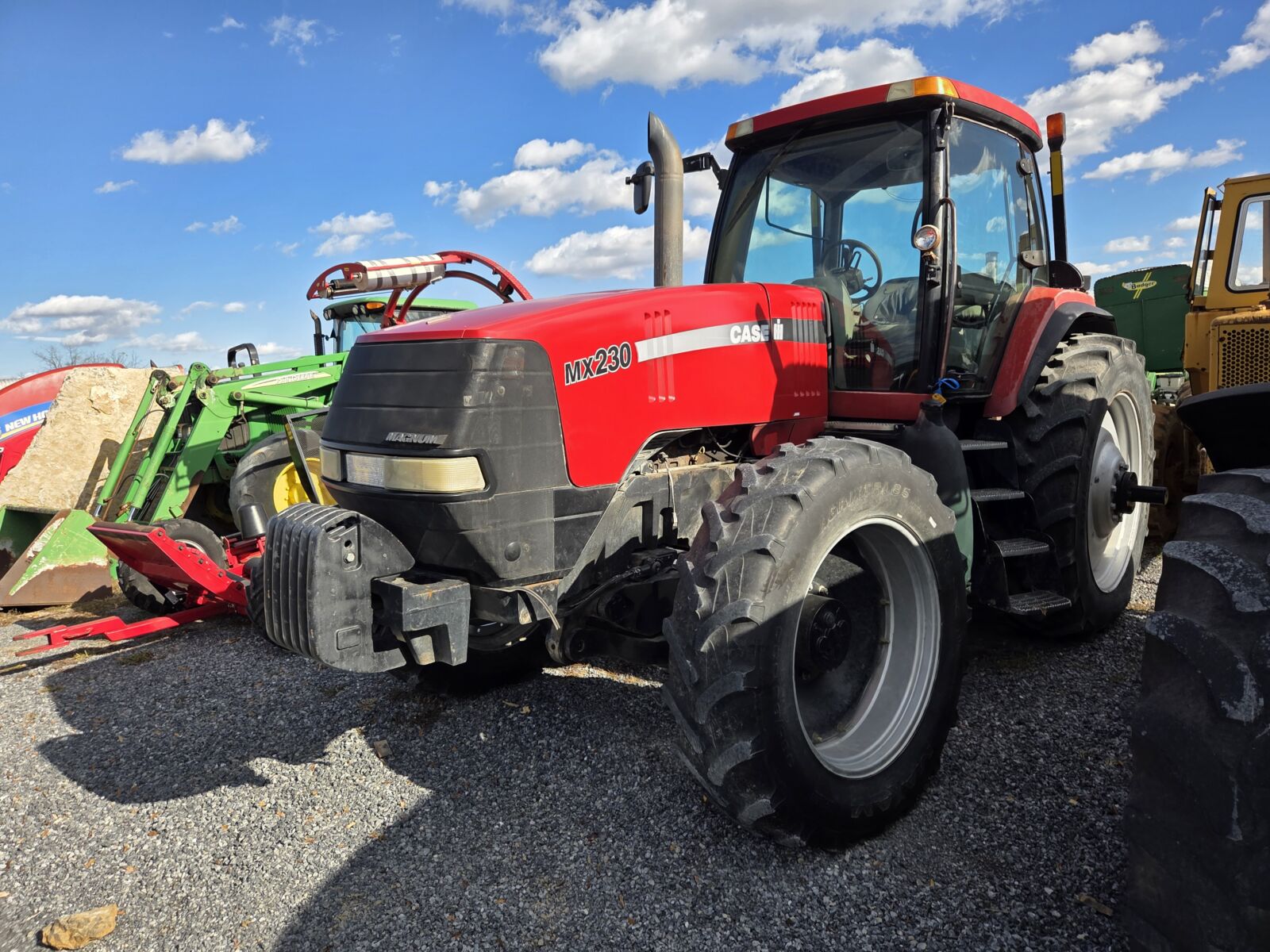 Case IH: MX240 Cab, 4×4, front 3pt & PTO, PS, 6900 hrs; 7220 Cab, 4×4, PS, 7248 hrs; MXU125 Cab, 4×4, PS, loader, 8740 hrs; Farmall 95N 4×4, loader, 4550 hrs; JX75 OROPS, 4×4, 706 hrs; 1256 TA, 2 remotes, 6583 hrs; 885 open, 4×4, 2250 loader, TA, 6212 hrs; Hydro 100 – good hydro; Narrow Front for IH 56 series.