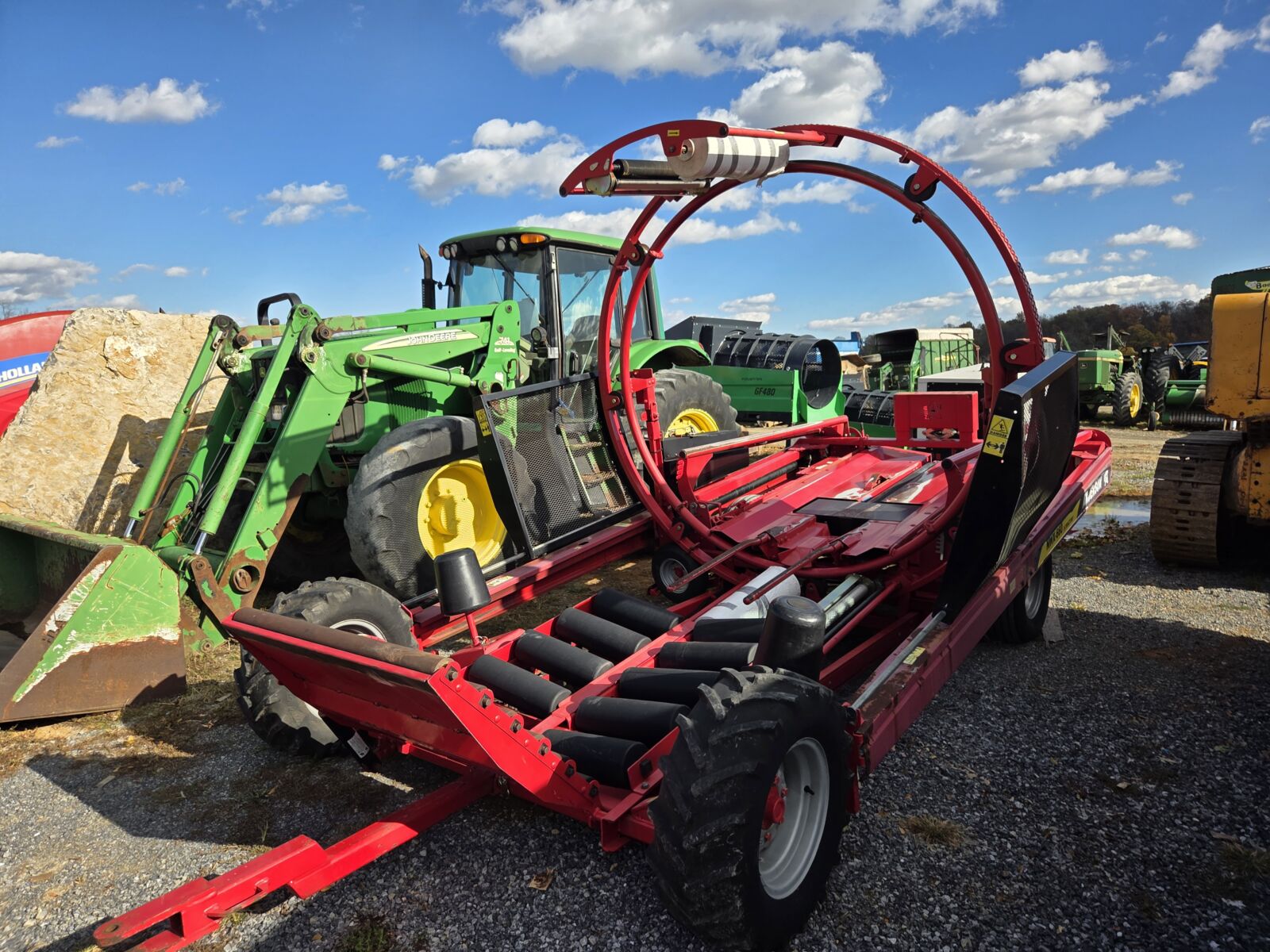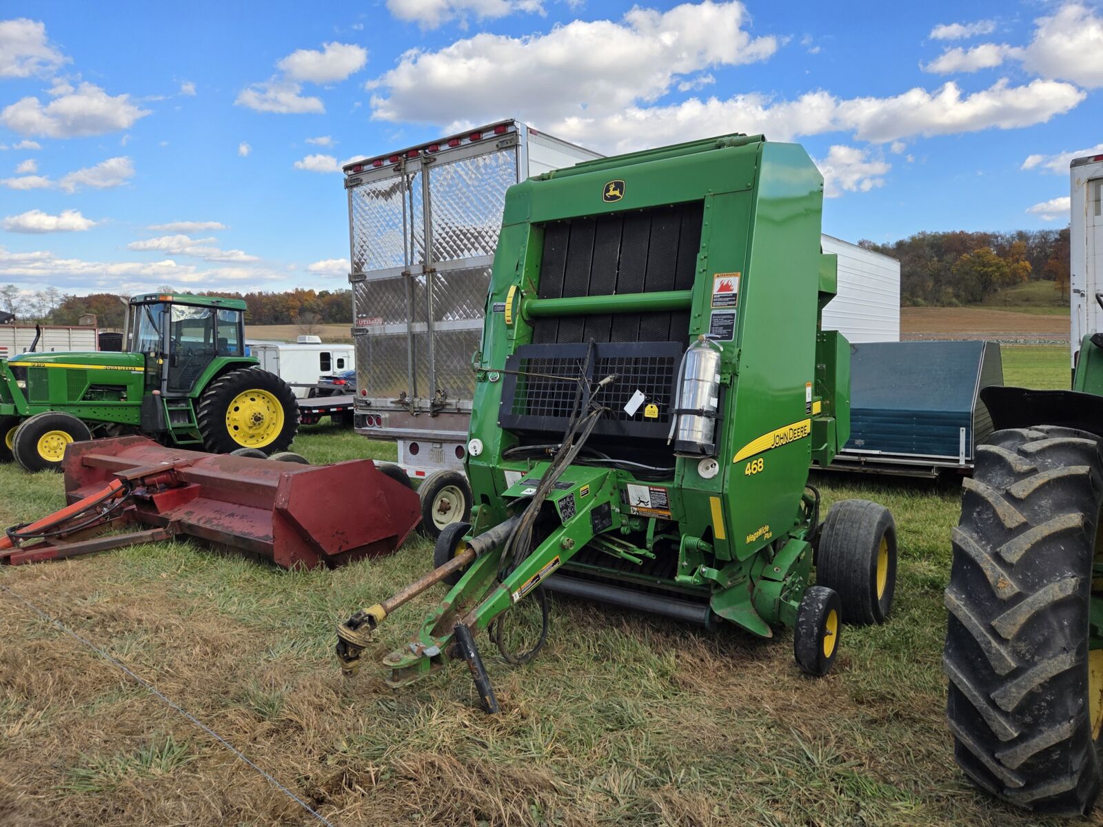 2021 Arcusin D14 bale bundler; 2013 NH Big Baler 330 41,698 bales; 2014 Claas 375 Uniwrap big baler, 14 knife roto cut, 28,500 bales – one owner; NH 450 Roll belt, Silage special, net wrap, 3400 bales; JD 459 round baler, net & twine, Silage special, 12,000 bales – nice; JD 582 round baler; Kubota BV4180 round baler; Gehl 1860 5×6 round baler; JD 348 w/ #40 kicker; NH 315 w/ thrower; NH 320 baler w/ 70 thrower, hyd tension, hyd pickup, liquid applicator; N.I. 323 1 row picker.