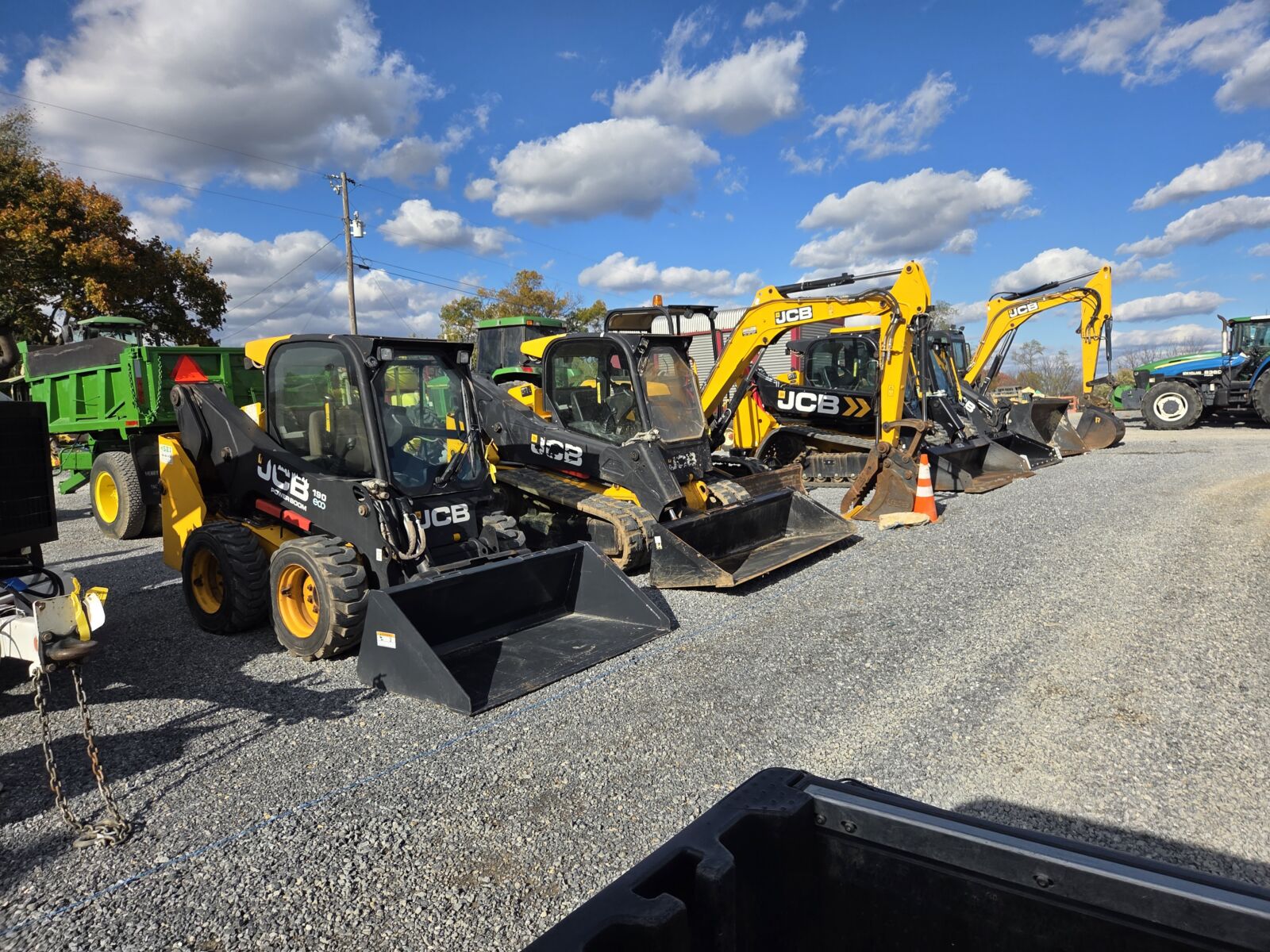 Excavators: 2022 JCB 48Z-1 OROPS, hyd thumb; 2018 JCB 85Z-1 ECO, aux hydraulics; Komatsu PC290 LC10 3rd valve; Hyundai 35Z-9 mini; Kubota KX040-4 cab, 3,000 hrs; 2021 Takeuchi TB235-2R hyd thumb, 1400 hrs.