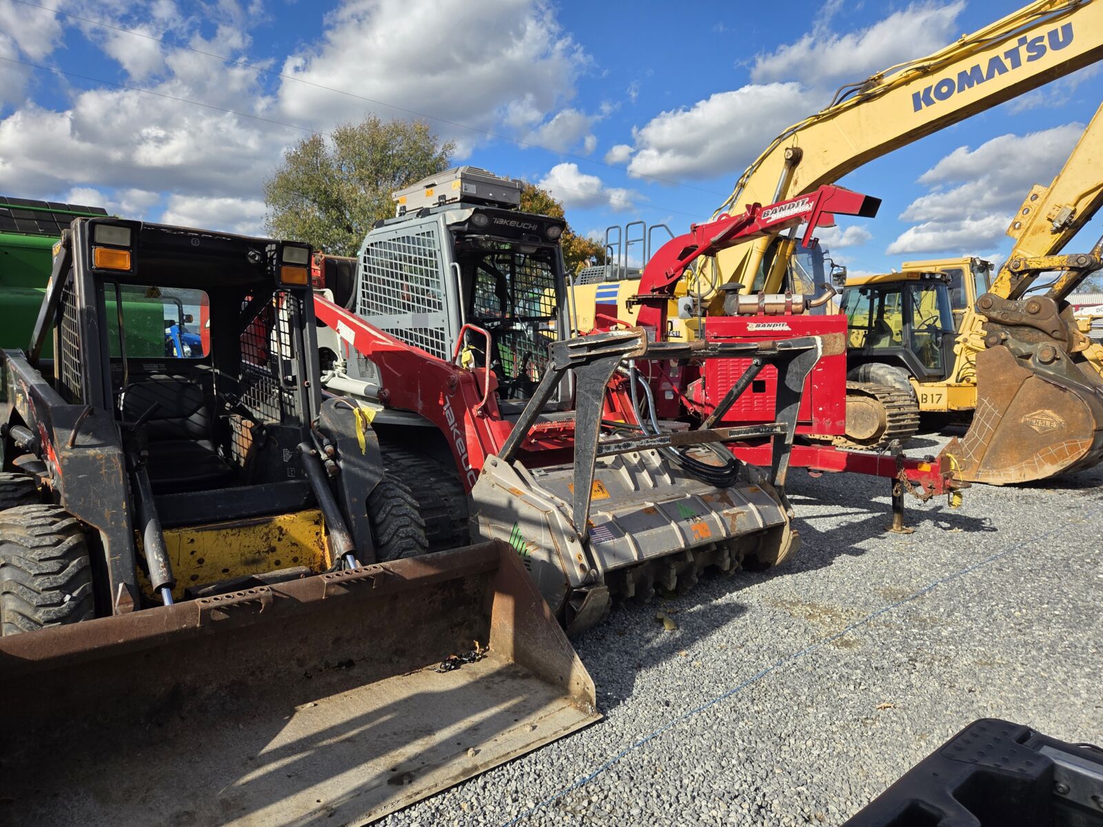 Takeuchi: 2019 TL12R2 EROPS, Forestry Mulcher package, High flow, hyd. oil cooler, Winch, FAE mulching head, 1600 hrs; TL8R2 EROPS, high flow, pwr attach, 1161 hrs; JCB: 2024 3TS-8T EROPS, all options, 540 hrs; 2023 270 EROPS, all options, warranty, 12 hrs; 2020 270T EROPS, hyd latch, 2270 hrs; 190 ECO EROPS, 2spd, 2740 hrs; 180 II OROPS, 1378 hrs; 2014 175 EROPS, 6013 hrs; Bobcat: 2022 S770 EROPS, 2spd, Hi flow, SJC controls, 1500 hrs; T630 2spd, Kubota dsl; S590 OROPS, Kubota dsl, 1914 hrs; S330 OROPS, high flow, 2190 hrs; 2008 S250 EROPS, 2spd, Pilot controls, 7050 hrs; 753 OROPS, 2700 hrs; MT85 mini skid – new tracks; Deere: 2022 330G OROPS, 299 hrs; 2016 324E OROPS, 1760 hrs; Case: 2 – 2022 SV280Bs EROPS, 2spd, hyd latch, 300 & 500 hrs; 2021 SV280B EROPS, 2spd, joystick, 350 hrs; 90XT EROPS, 2spd, 2930 hrs; 85XT OROPS, 1898 hrs; 450 Series 3 EROPS, 1825 hrs; 1845C OROPS, 3976 hrs; 1845C grey cab, OROPS, 2800 hrs; 1840 OROPS, 2375 hrs; Cat: 268B EROPS, hyd latch; 257B EROPS, 675 hrs; Kubota: SSV75 EROPS, joystick, pwr latch, hi-flow, 1580 hrs; 2022 SCL1000 mini skid, 600 hrs; Gehl: 2 – 2021 RT105s OROPS, 660 & 890 hrs; 4625SX OROPS, T-bar, 6600 hrs; Wacker Neuson: 2020 SW28 EROPS, 2spd, high flow, 2100 hrs, eng. warranty till 2028; Baumalight: TRL620D mini skid, 36 hrs.