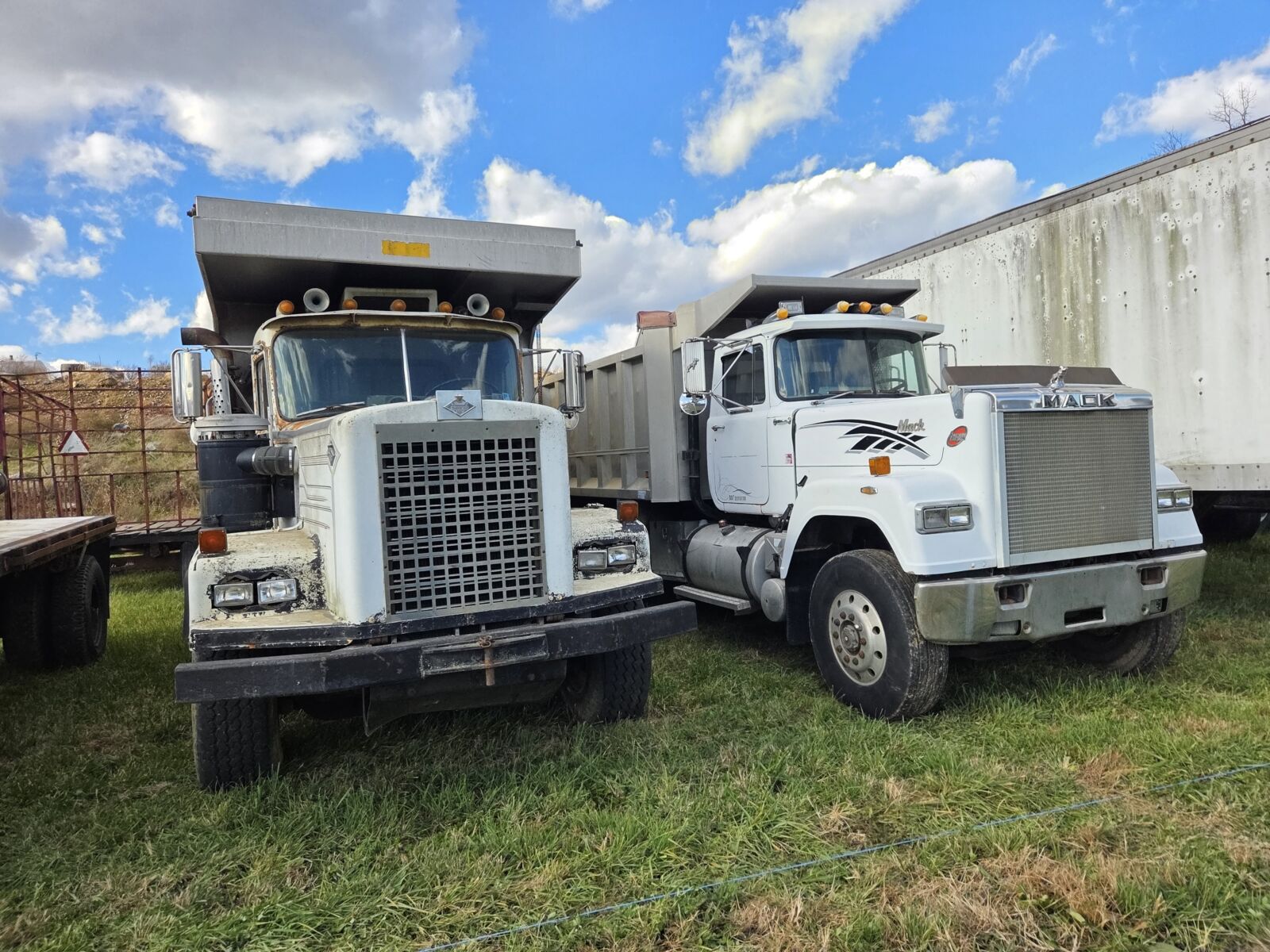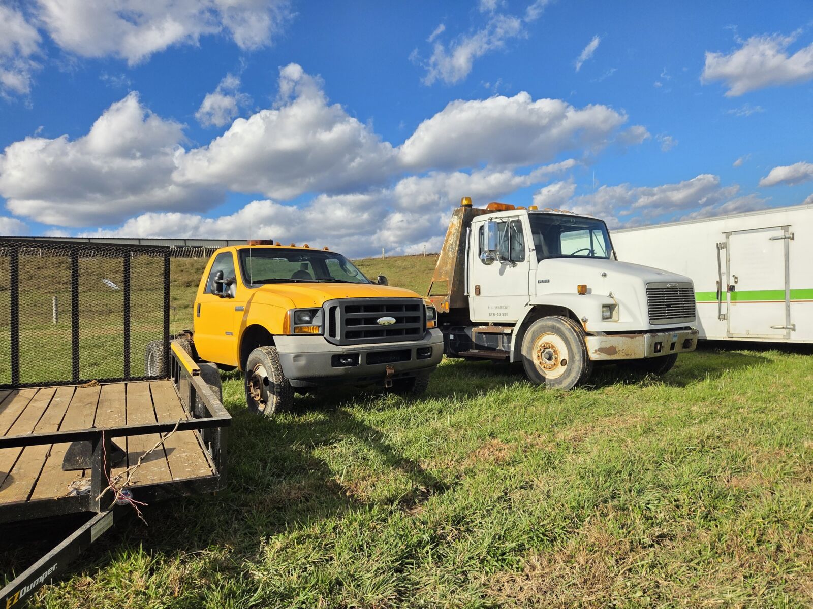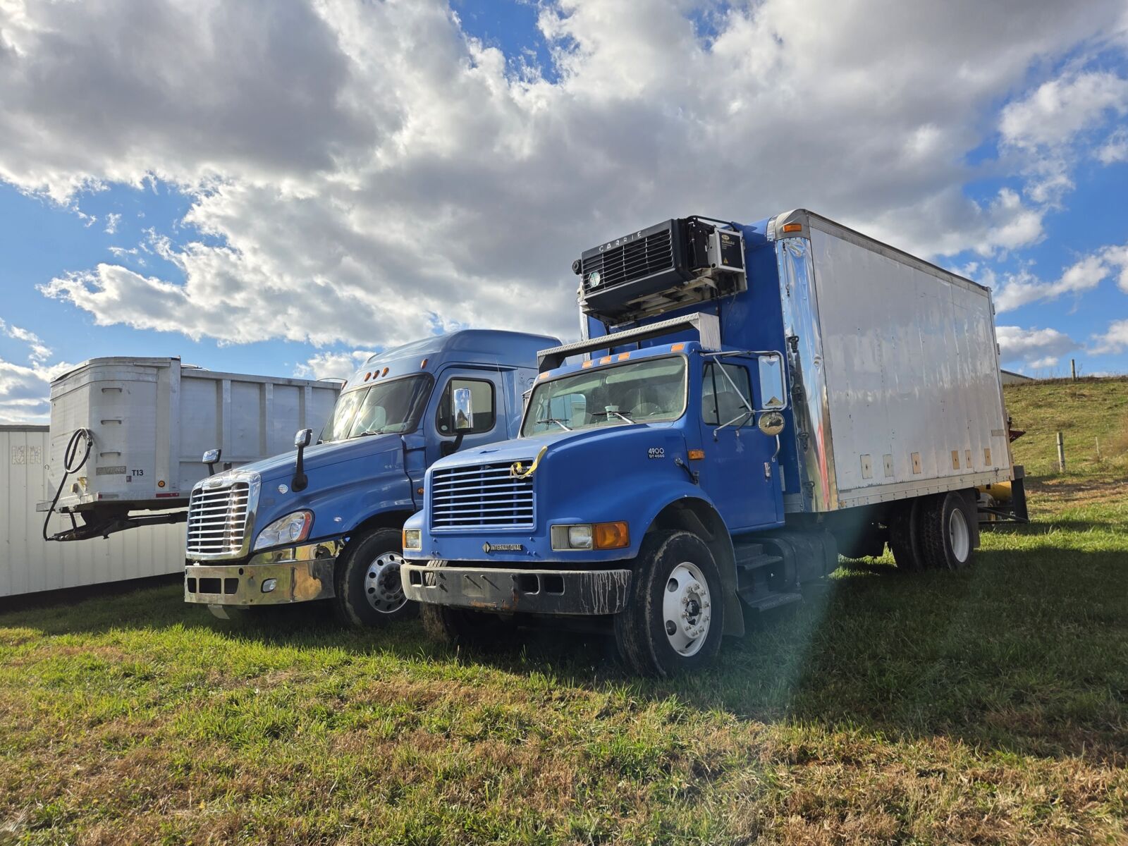2014 Kenworth T680 road tractor, Paccar MX13, Eaton Fuller 10 spd, 1,078,000 mi; 2002 Freightliner triaxle truck w/ 18’ aluminum grain dump; 1985 Kenworth W900 road tractor, Cat, wet line, nice farm truck; 1984 Diamond Rio dump truck, 19’6” alum dump bed w/ grain chute; 2007 GMC 6500 box truck, 8.1 Liter gas, lift gate, 45,271 mi; 2010 Chevy 3500HD w/ SH flat truck body, Duramax, Allison, 273,000 mi; 2004 Ford F350 flat bed truck, 12’ bed, 6.0 dsl, 6 speed manual, 4×4, 121,450 – 1 owner miles; 2023 Norstar 16’ dump trailer, tarp, tandem axle, 14K GVW; 2013 Four Star 8’x32’ aluminum stock trailer, gooseneck; 1988 Ravens 36’ aluminum frameless dump trailer, spread axle, tarp; 2018 PJ 22’ deck over trailer, hydraulic tilt, winch, alum. wheels; 2020 PJ 40’ gooseneck.