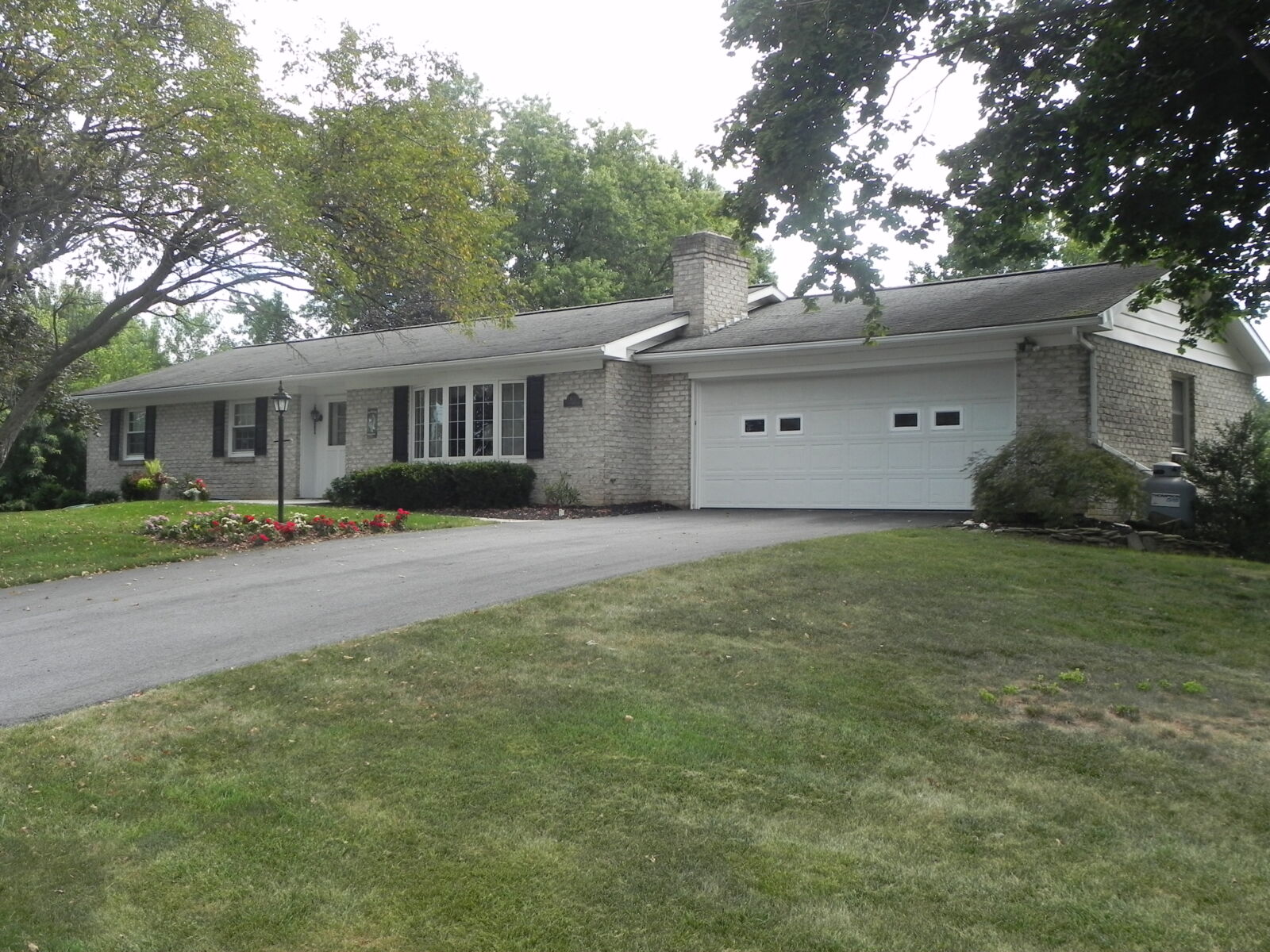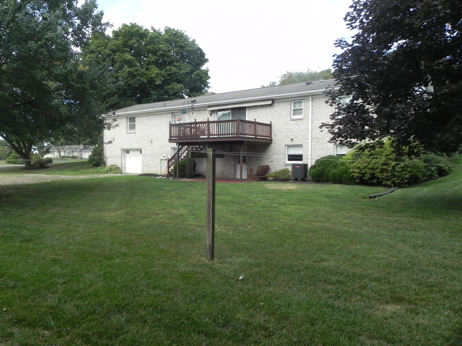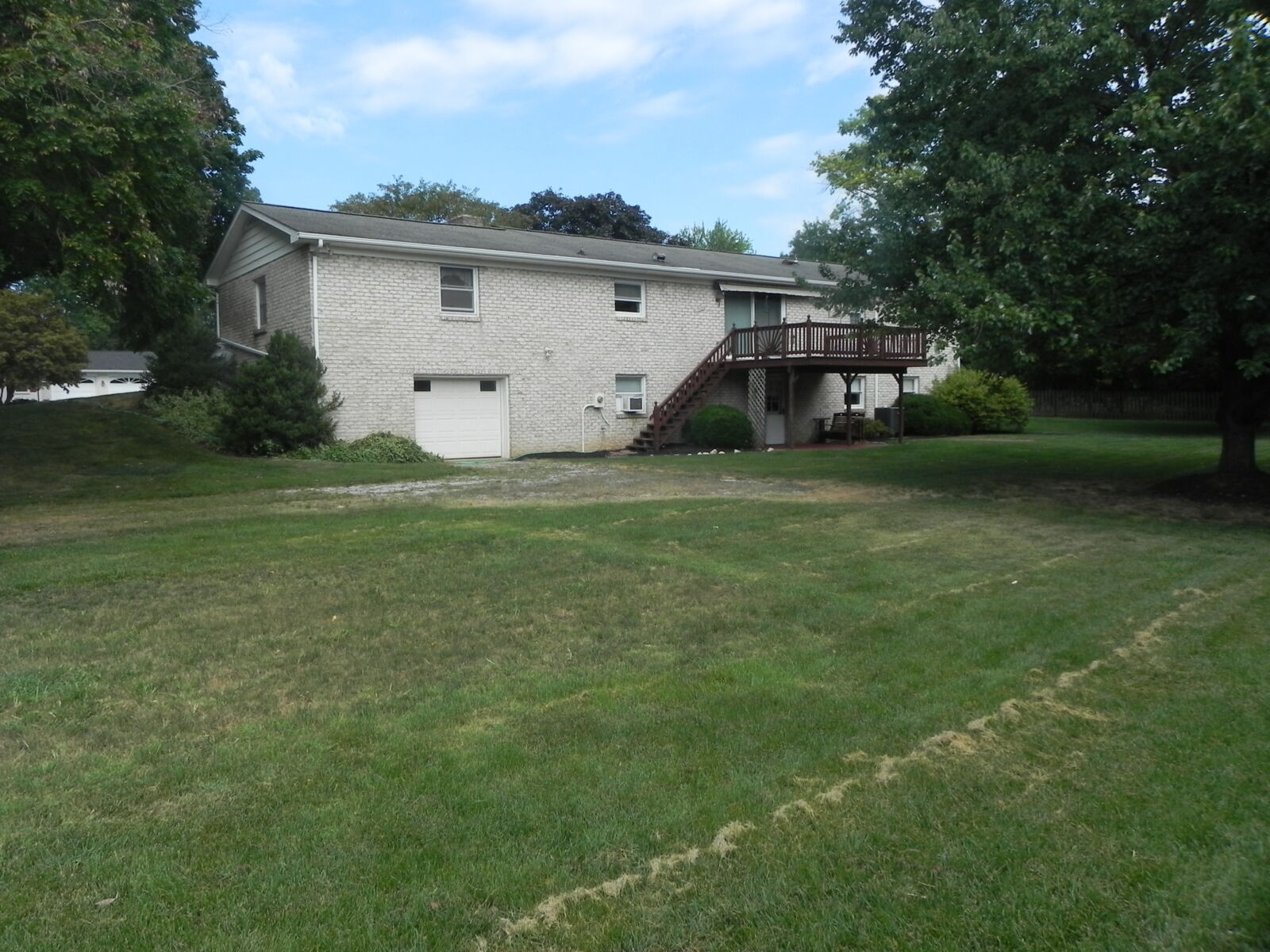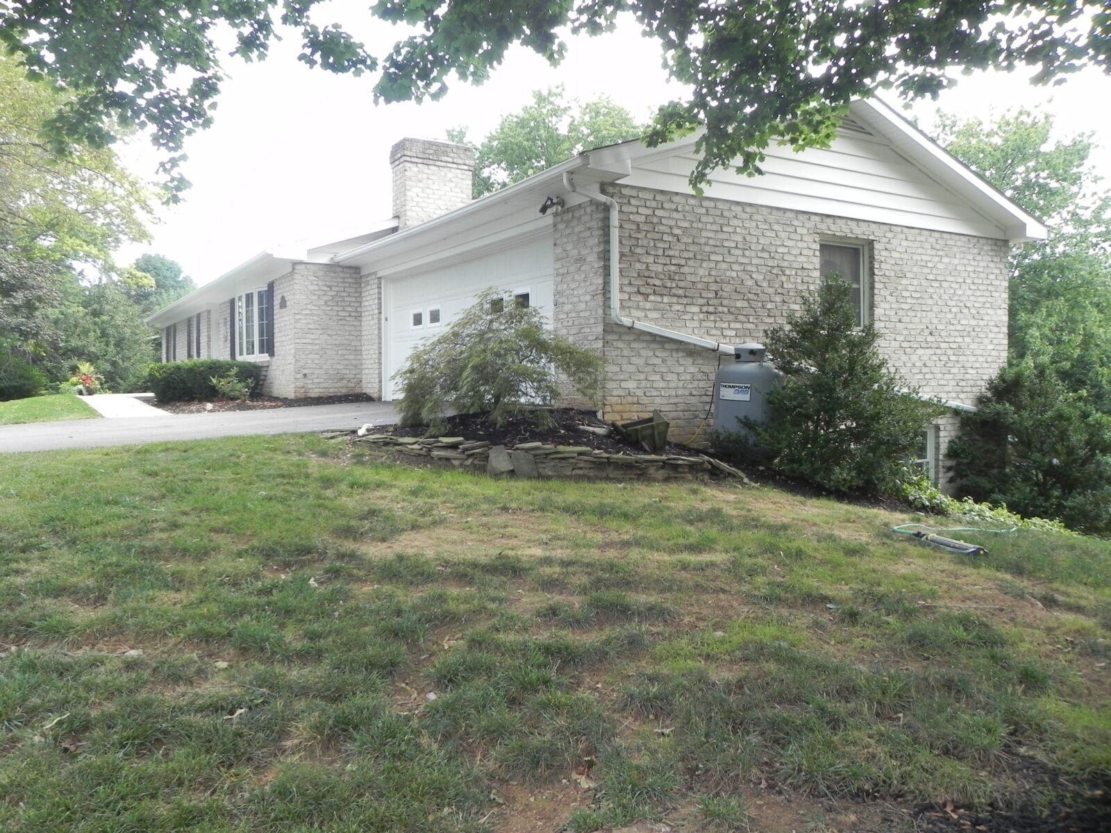 White brick, 2 car garage attached. 1st floor: 3 bedrooms, 2 full baths. Large kitchen w/ dining area, nice cherry cabinets. Foyer leads to living room w/ fireplace. Basement: Office / sewing room, ½ bath. Large rec / family room w/ gas fireplace. Nice laundry room & cold cellar. Also 1 car garage w/ work area. Porch & deck. Many closets. Heat is elec. baseboard. Central AC. Built in 1974. Approx. 2800 sq.ft. living area.