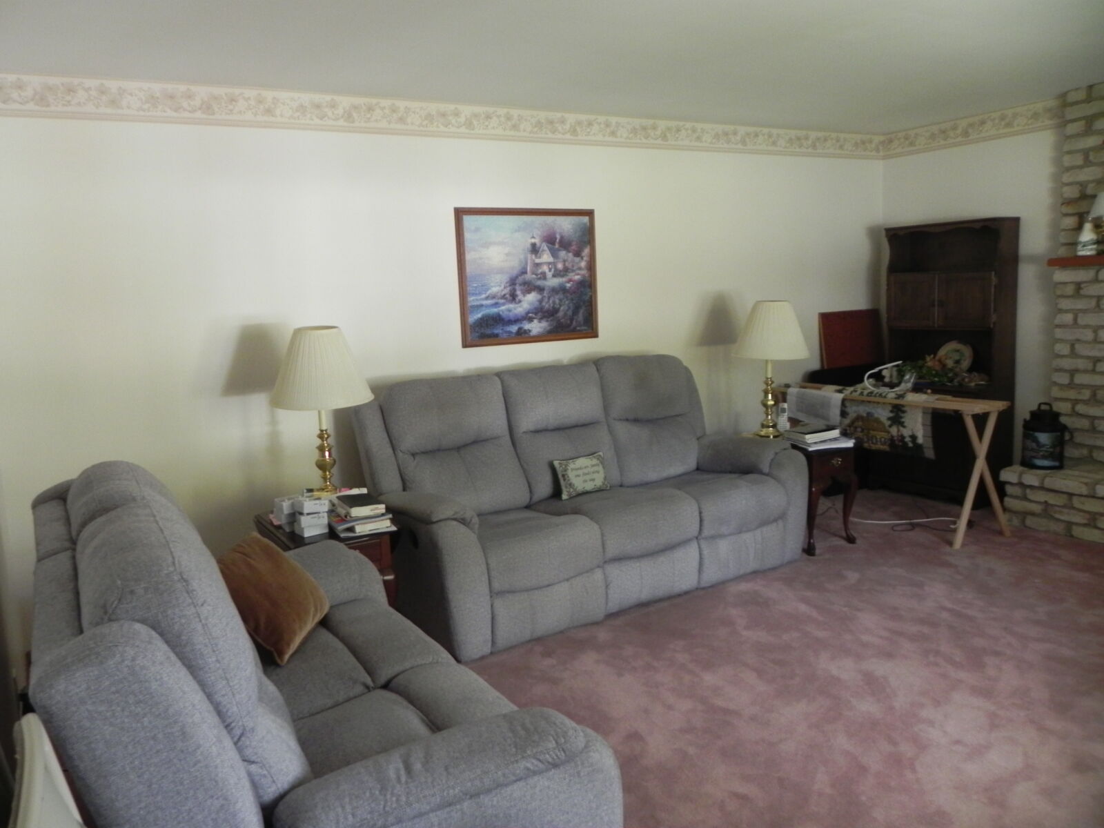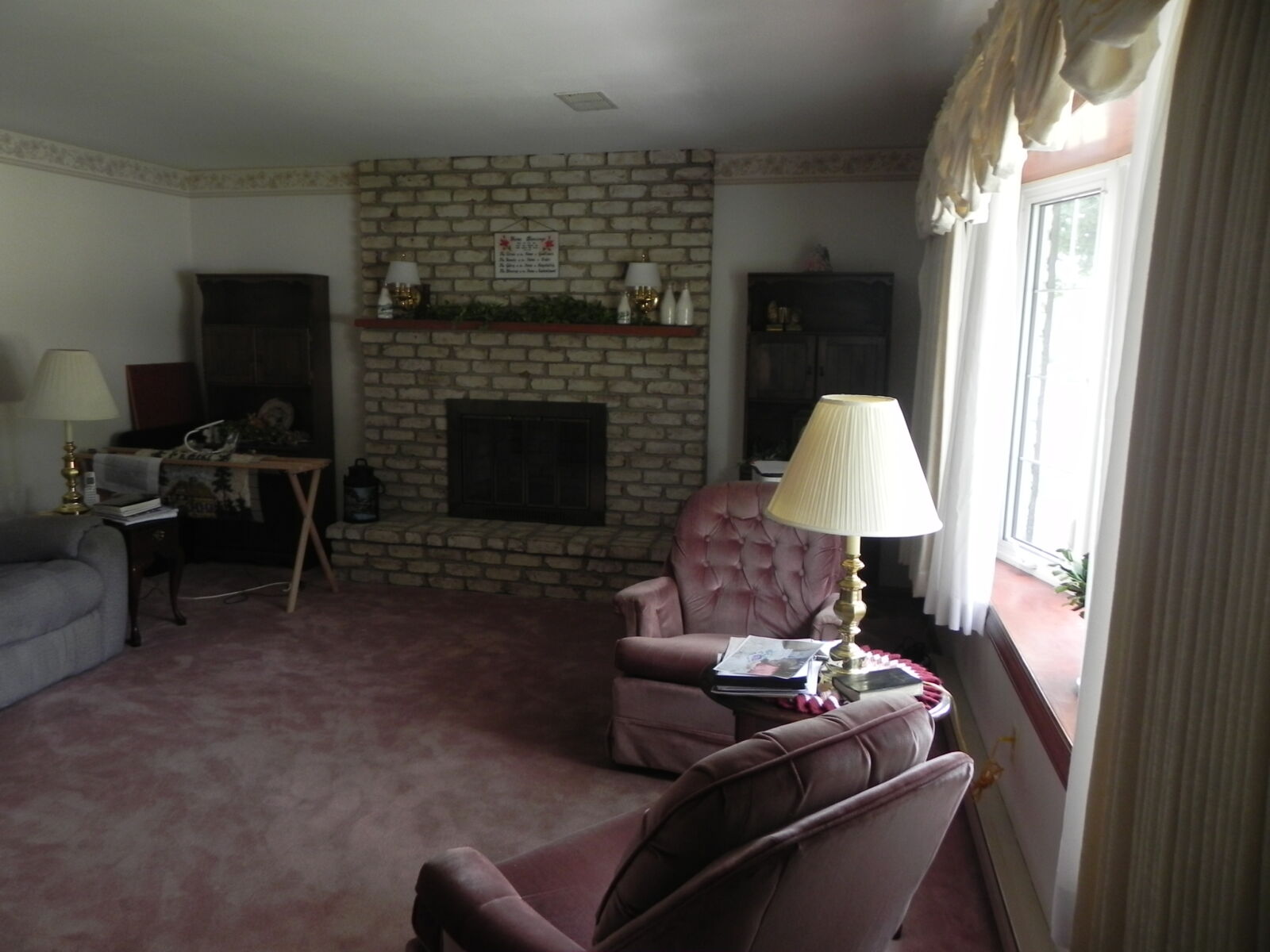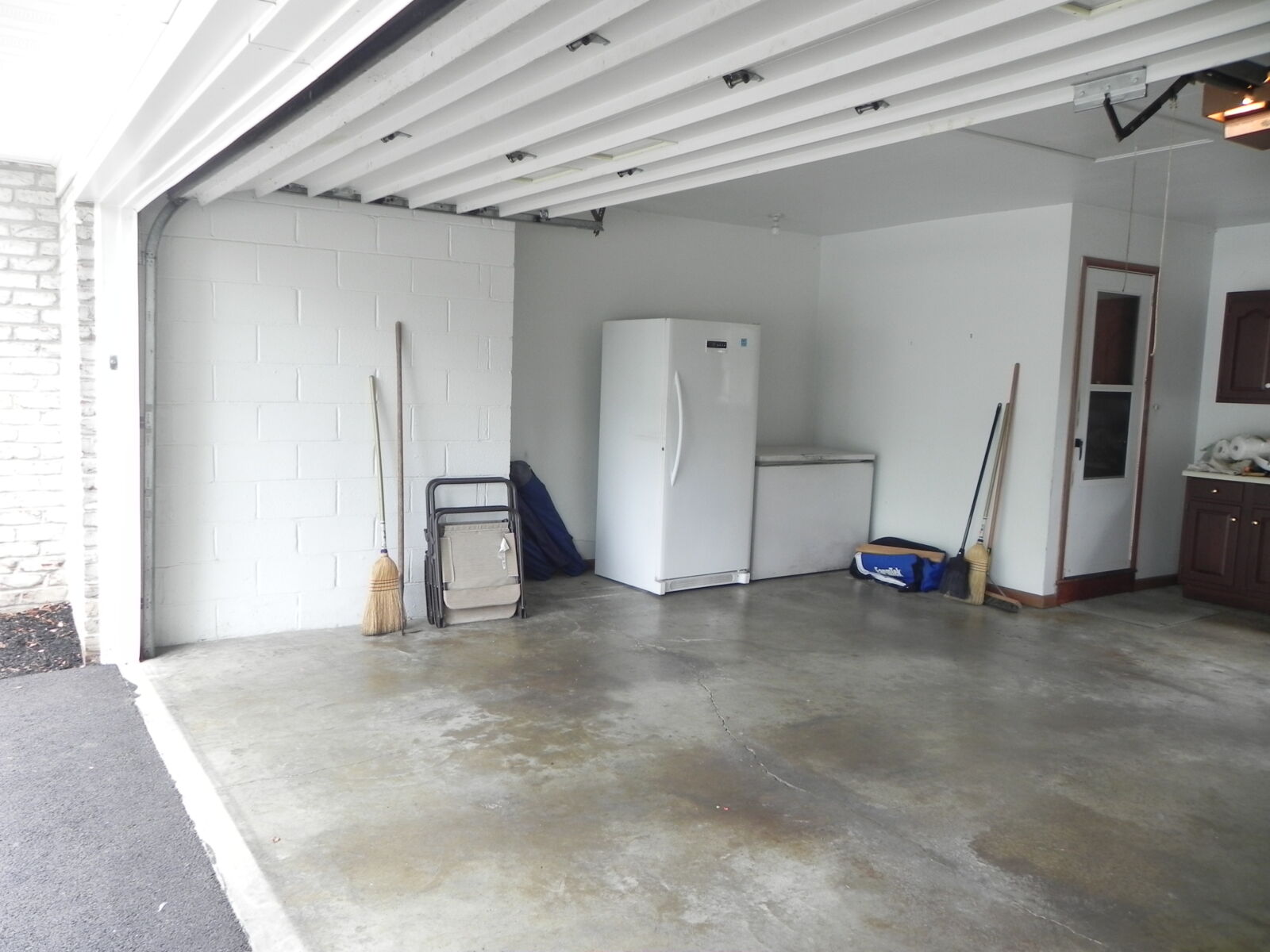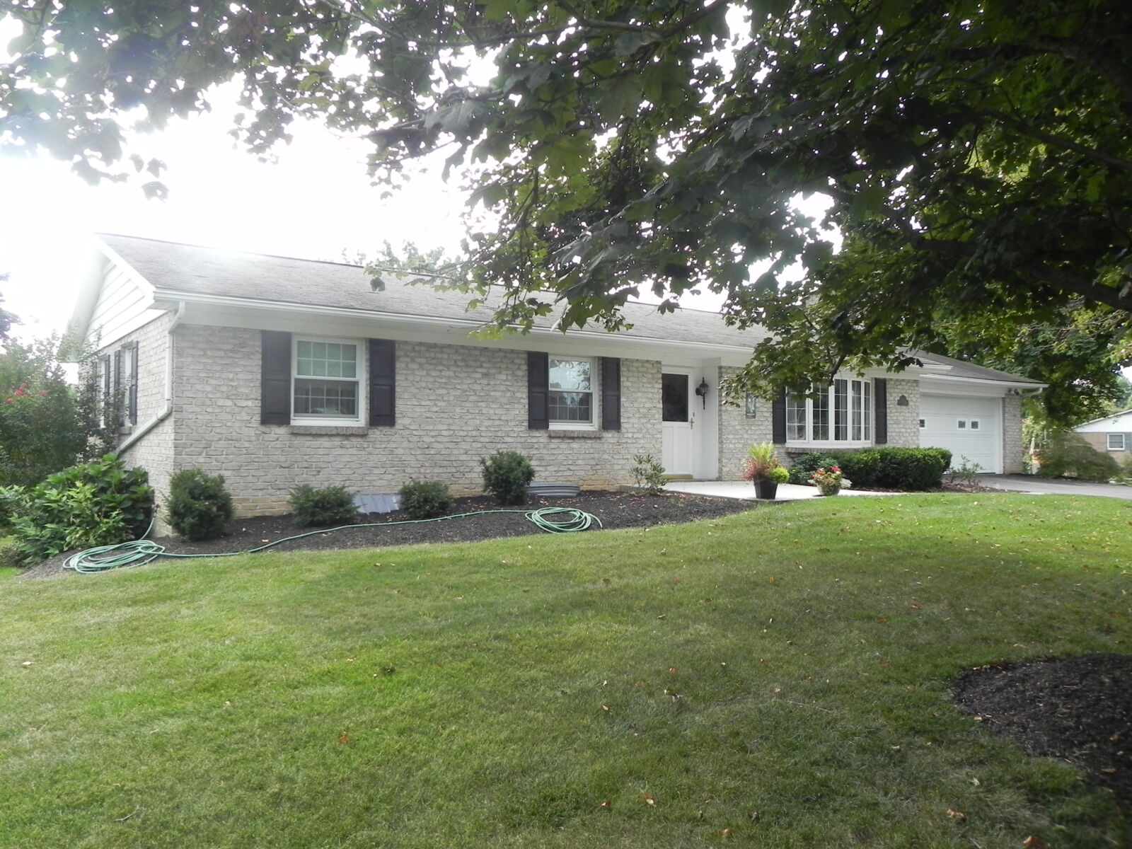 White brick, 2 car garage attached. 1st floor: 3 bedrooms, 2 full baths. Large kitchen w/ dining area, nice cherry cabinets. Foyer leads to living room w/ fireplace. Basement: Office / sewing room, ½ bath. Large rec / family room w/ gas fireplace. Nice laundry room & cold cellar. Also 1 car garage w/ work area. Porch & deck. Many closets. Heat is elec. baseboard. Central AC. Built in 1974. Approx. 2800 sq.ft. living area.