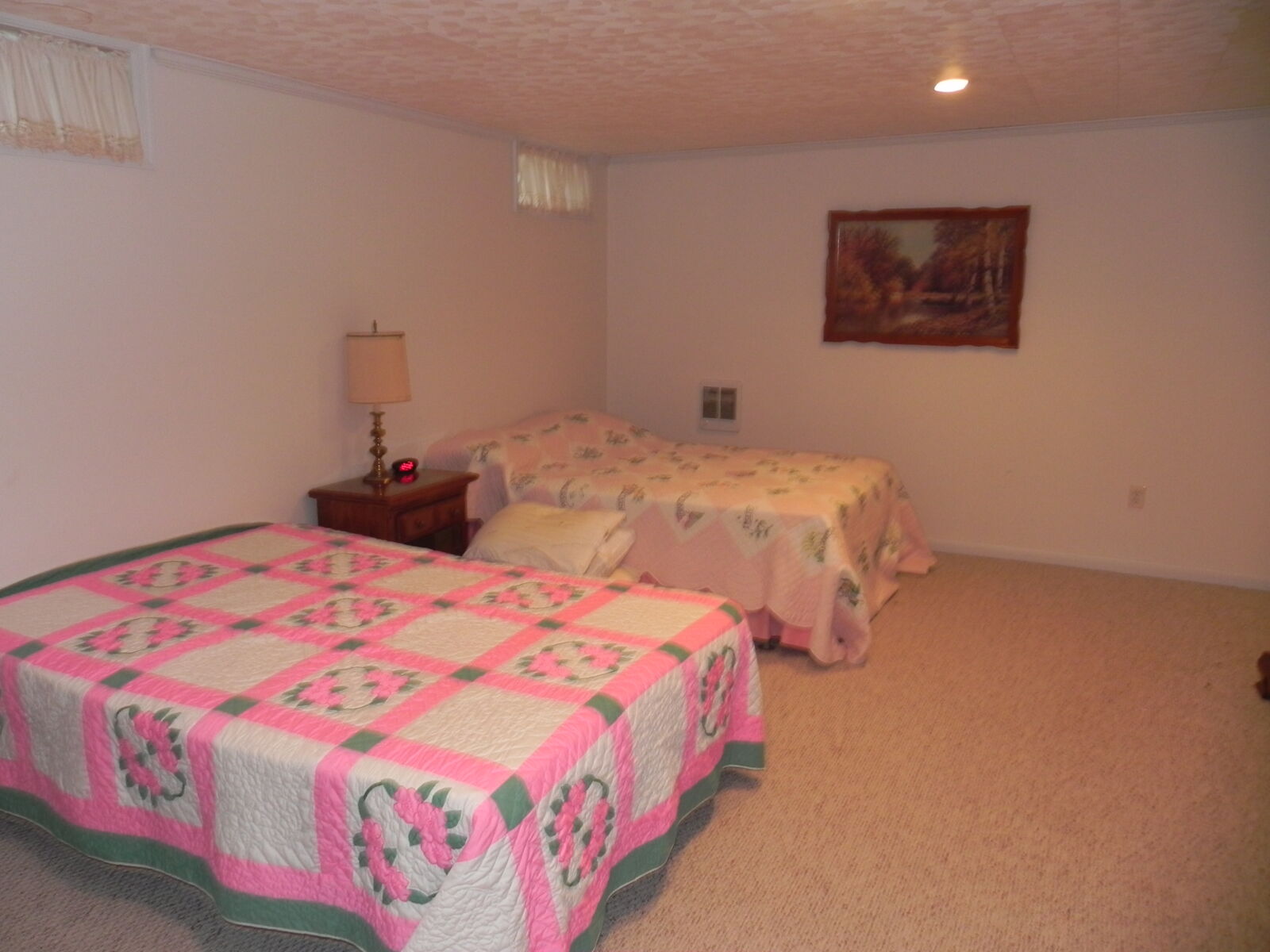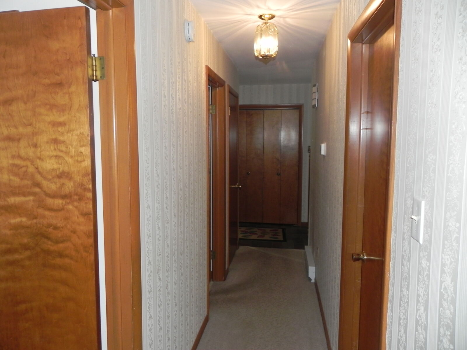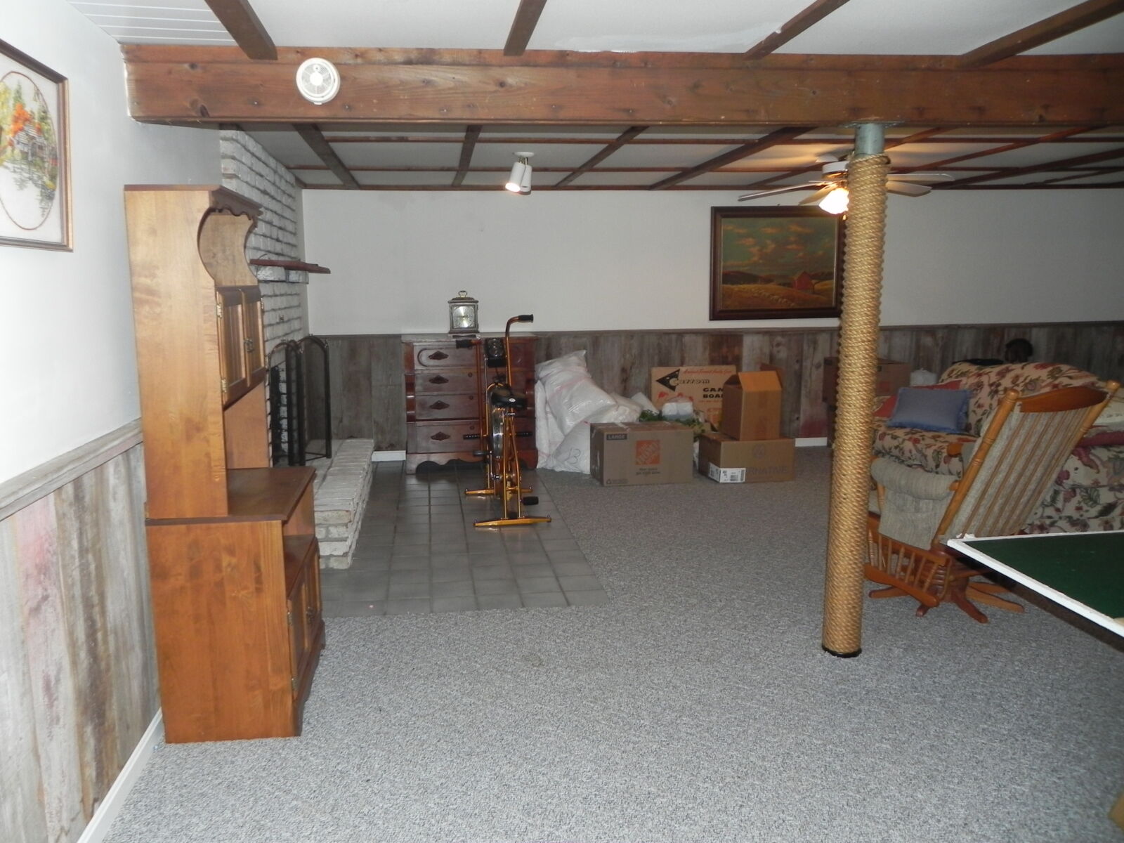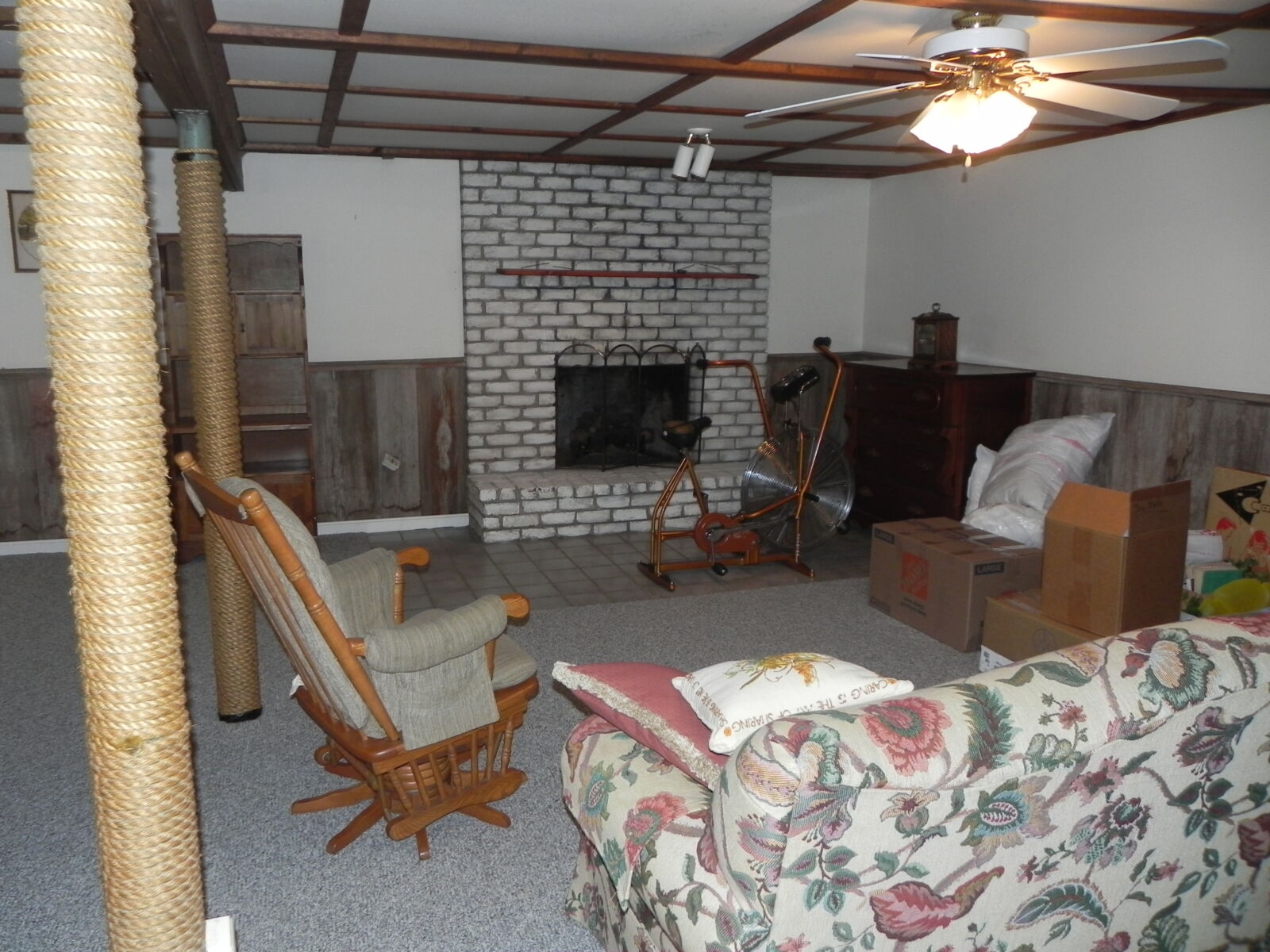 White brick, 2 car garage attached. 1st floor: 3 bedrooms, 2 full baths. Large kitchen w/ dining area, nice cherry cabinets. Foyer leads to living room w/ fireplace. Basement: Office / sewing room, ½ bath. Large rec / family room w/ gas fireplace. Nice laundry room & cold cellar. Also 1 car garage w/ work area. Porch & deck. Many closets. Heat is elec. baseboard. Central AC. Built in 1974. Approx. 2800 sq.ft. living area.