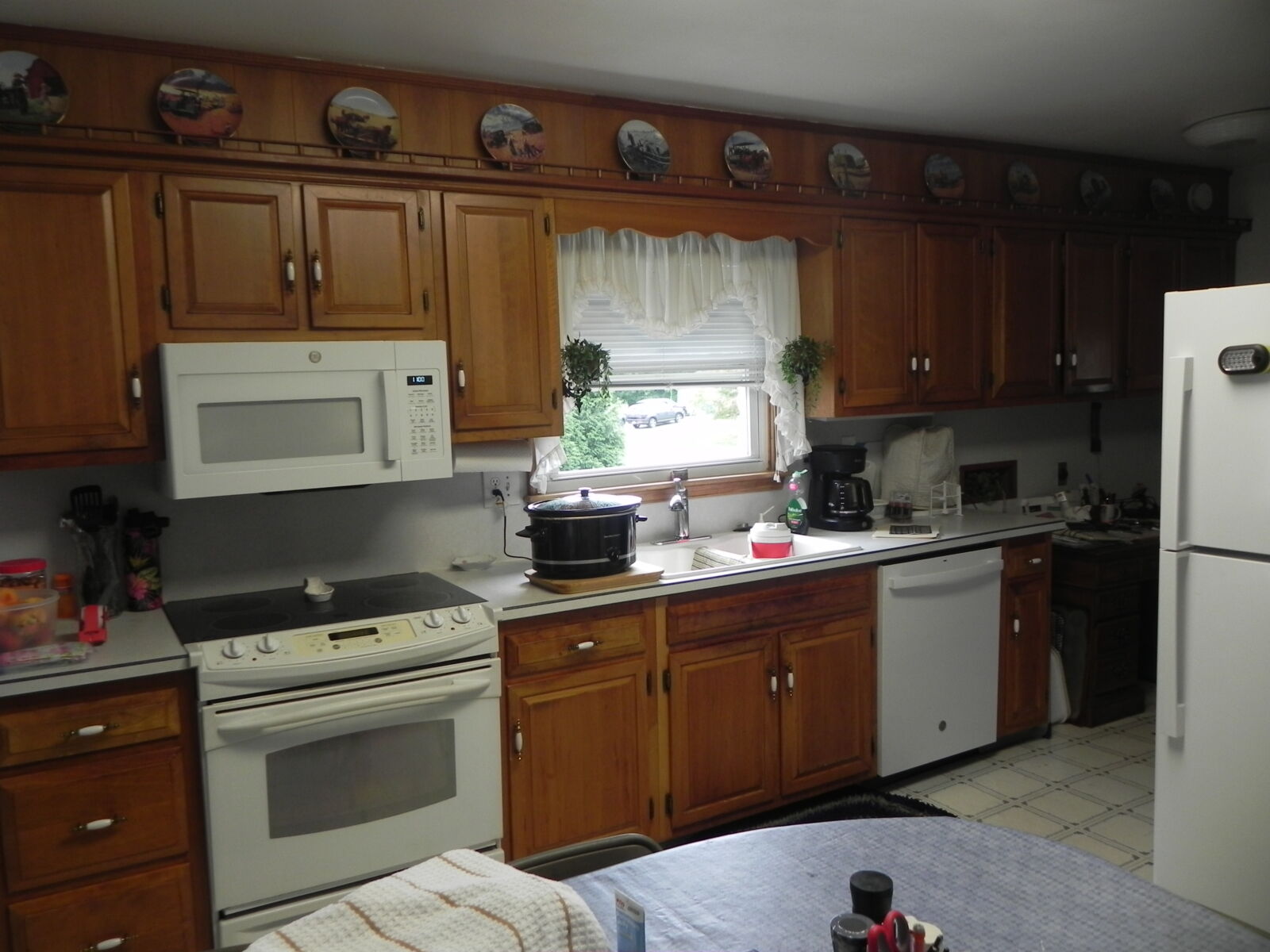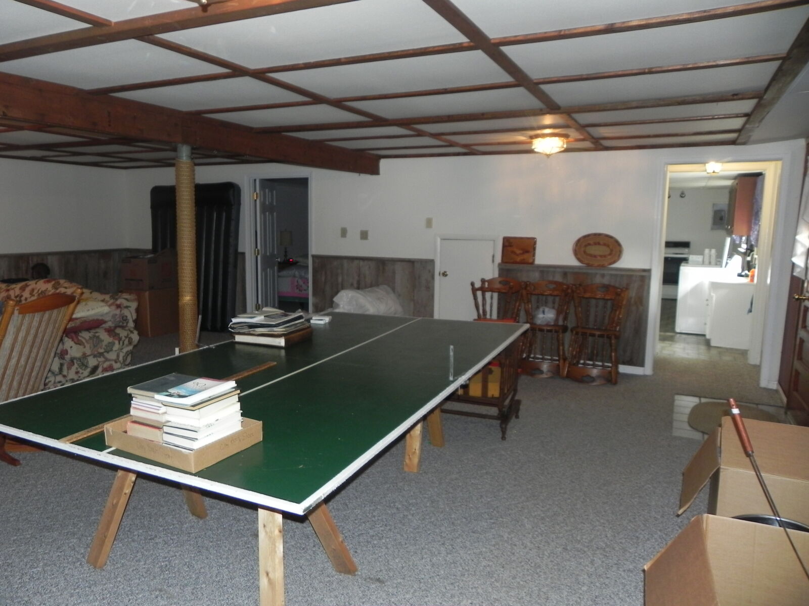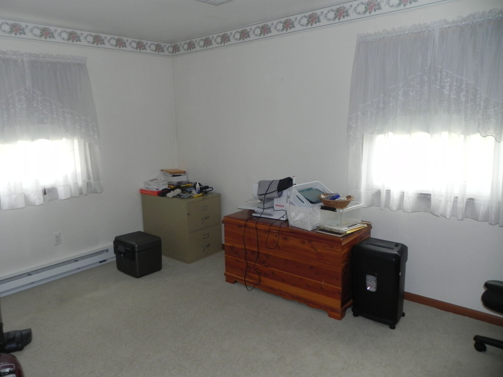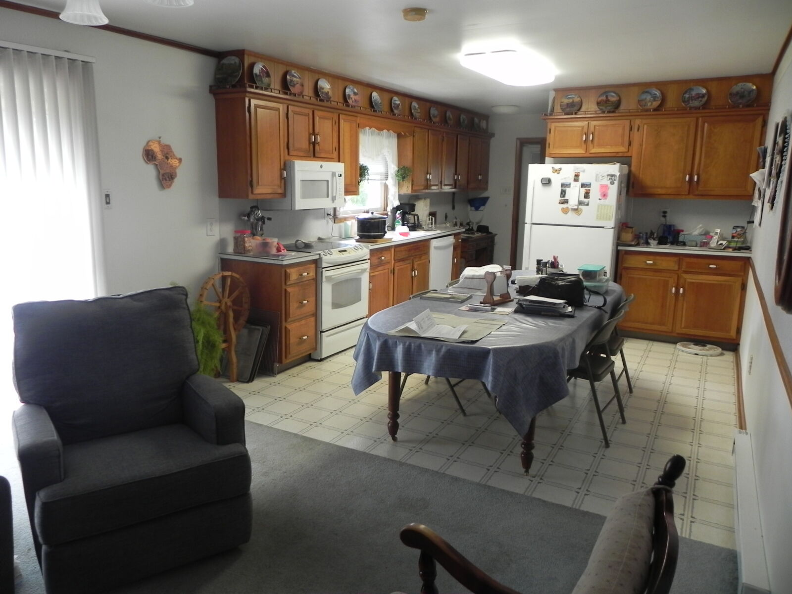 White brick, 2 car garage attached. 1st floor: 3 bedrooms, 2 full baths. Large kitchen w/ dining area, nice cherry cabinets. Foyer leads to living room w/ fireplace. Basement: Office / sewing room, ½ bath. Large rec / family room w/ gas fireplace. Nice laundry room & cold cellar. Also 1 car garage w/ work area. Porch & deck. Many closets. Heat is elec. baseboard. Central AC. Built in 1974. Approx. 2800 sq.ft. living area.
