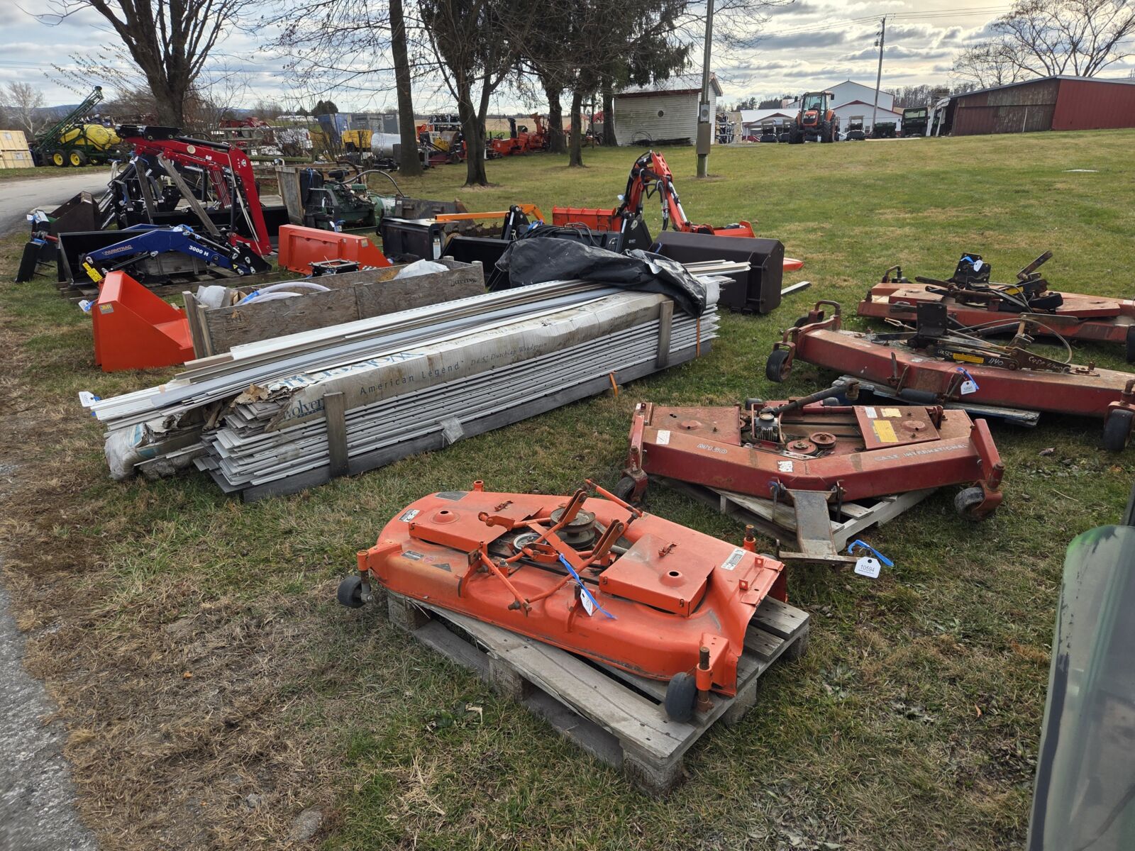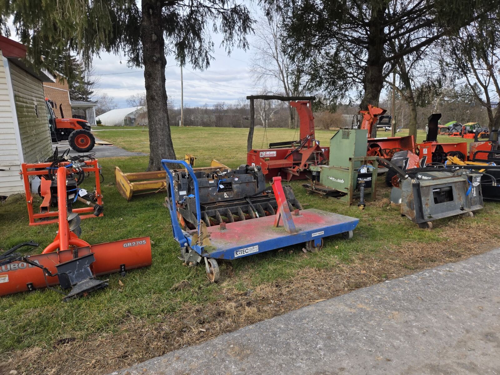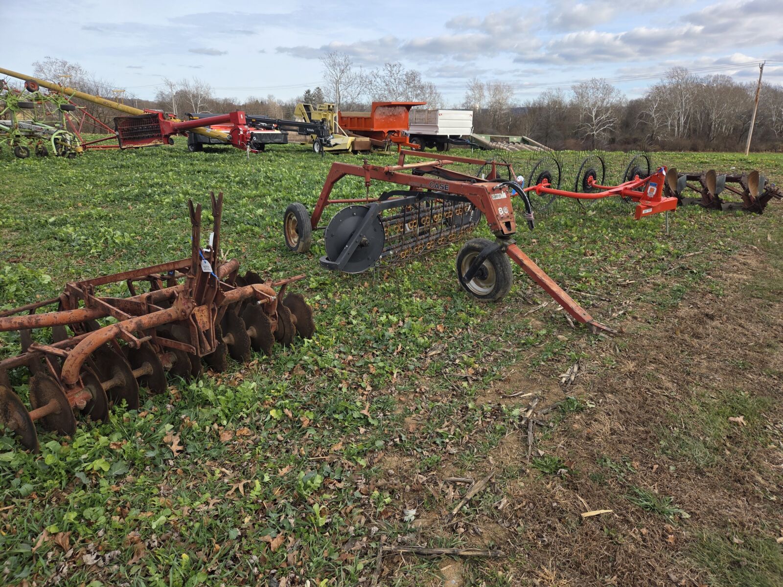 Farm Machinery: 2020 MF RB4180V baler, 11500 bales; 2024 Haybuster 2574 bale buster; M&W 4590 4×4 round baler; JD 750 15’ no till grain drill; Claas Volto 1050T 8 star tedder; Kubota DMC8540R mower – demo; Befco 3pt wheel rake; Westfield MKX1061 transport auger; Miller Pro 7914 merger; NH 824 corn head; JD 546 6row corn head; Oxbo bean picker; IVA single boom produce sprayer – like new; 2 – Single axle dump carts; Tar River YCT-60 3pt tiller;