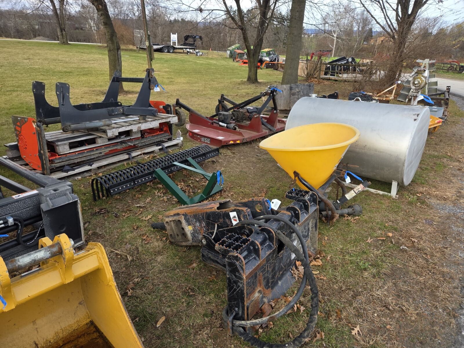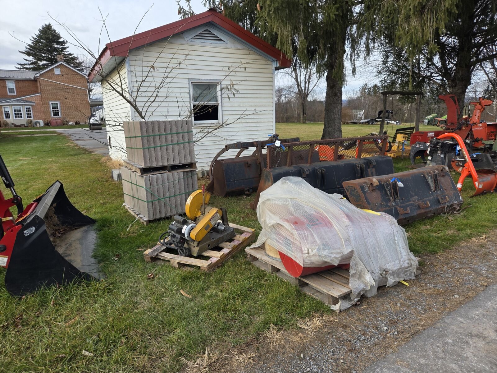 Misc. Items: 2021 Sure Trac 24’ gooseneck trailer; 15×15 vent free paint booth; G.M. dsl water pump w/ clutch; Kubota V2403 dsl w/ radiator – like new; Harrington 2 ton bridge crane hoist w/ remotes; PR Hoffman FL-36 lapping machine; Lincoln 445 & 260 welders; Torit smoke filtering system; Scotchman Ironworker 70/110 dual station; Rigid 801 pipe threader; New 2x4x14 southern yellow pine; Large amount of Compact Tractor Parts, Sheet metal, Loader brackets, Tires & wheels, Weights, Steel wheels, Seats, Loaders, Misc. New & Used Shop Tools & Equipment, Misc. New Skidsteer attachments, Truckload of Northern Tool returns; Plus much more.